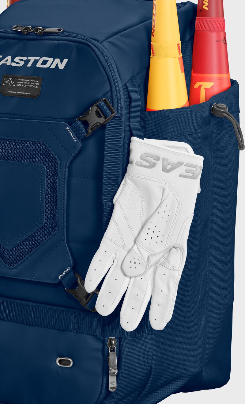 The Easton Walk-Off Ethos Backpack delivers unmatched versatility and elite-level storage for players who demand more from their gear bag. Designed with four lock-in bat sleeves and a dedicated footwear compartment, this backpack protects and organizes your game-day essentials with ease. Its adjustable helmet holder offers a secure fit for most helmet sizes, and can even carry multiple lids when needed.